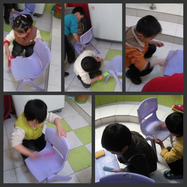 大家一起洗椅子,劳动中也充满了快乐! 照片2: