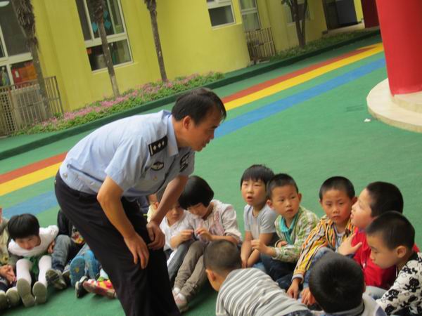 “警察叔叔”从来都是孩子们最崇拜的人,近日,红梅派出所的警察黄叔叔来到红溪实验幼儿园大二班,为孩子们进行了安全知识讲座,围在黄叔叔的身边,孩子们听得入了迷,叔叔把安全知识讲得既亲切又生动,让孩子们受益不浅。这下,“雷锋”黄叔叔更让孩子们崇拜了!(常州市红溪实验幼儿园供稿) |