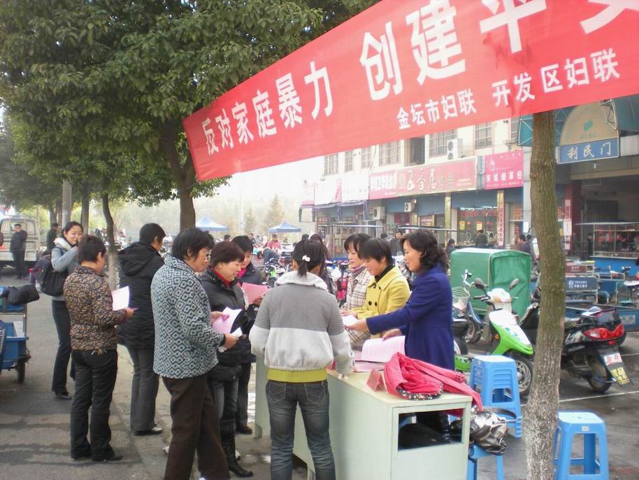 为预防和制止家庭暴力,促进家庭和睦,维护社会稳定,近日,金坛市妇联开展了反家暴系列活动。 一是开展宣传。以“反对家庭暴力 创建平安家庭”为主题进行普法宣传,加大反家庭暴力宣传力度,让广大妇女提高维权能力,营造和谐的家庭氛围。向广大群众发放“反家庭暴力 建和谐家园”倡议书、《婚姻法》、《妇女权益保障法》等宣传单1000余份;为100余名群众提供法律咨询服务;在市区主要路段张贴各种反对家庭暴力的宣传图片和横幅标语。 二是问计基层。召开“反对家庭暴力 创建平安家庭 共享和谐新农村”座谈会,听取村妇代会主任、妇女代表等人对反家暴的意见和建议。 三是进行回访。市妇联权益部对曾遭受家庭暴力的妇女进行了回访,了解近期家庭生活情况,继续巩固调解所取得的成果,避免发生反复。 四是组织活动。各基层妇联纷纷开展形式多样的活动,进一步营造全社会共同关注家庭暴力的浓厚氛围。如朱林镇妇联开展法制文艺汇演;金城镇妇联、薛埠镇和指前镇等妇联走进社区、农村、企业开展反家庭暴力宣传,现场协助解决家暴问题,受到妇女欢迎。 (金坛市妇联供稿)