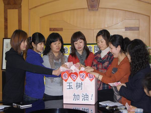 ![]() 4月14日7时49分,青海省玉树藏族自治州玉树县发生7.1级地震,给当地人民群众生命财产造成严重损失。党中央、国务院高度重视、极为关怀,迅速采取强有力的措施,对抗震救灾工作作出了全面部署。中央、全国妇联等领导同志专门就工青妇等人民团体在抗震救灾中充分发挥优势和作用作出重要指示。常州市妇联坚决贯彻上级的指示要求,迅速采取有力措施,大力弘扬“一方有难、八方支援”的优良传统,4月21日组织机关干部和下属单位妇女儿童活动中心、红溪幼儿园的职工为灾区捐款31050元,努力为灾区妇女群众抗灾自救、发展生产送温暖、献爱心,以实际行动支援灾区、服务灾区。 |