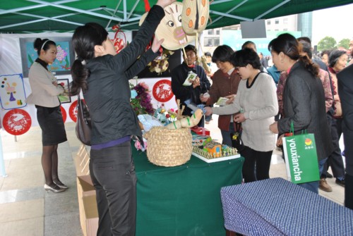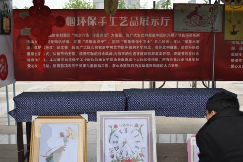 4月28日,值第十一届中国溧阳茶叶节暨第六届天目湖旅游节隆重开幕之际,溧阳市妇联在市人民广场集中展示了征集的80余件构思精巧、形式多样的环保手工制品,其中有废旧易拉罐制成的花瓶、烟灰缸,废旧布头制作的壁画、老虎鞋,废旧光盘制作的自行车、绿豆、瓜子壳、秸杆等制作的装饰画、用废纸、纸盒子等制作的果小货车模型等等。这些独具创意的作品吸引了市民的眼球,吸引广大市民驻足观看,啧啧称赞,使大家对废物利用产生了新的认识。据不完全统计,本次展示参观达数千人次,本次活动的开展一方面更好地宣传了节能环保的科学观念,倡导了简约环保的生活方式,同时也成为“两节”开幕式上展示溧阳女性慧心巧思的一道靓丽风景。(溧阳市妇联供稿)