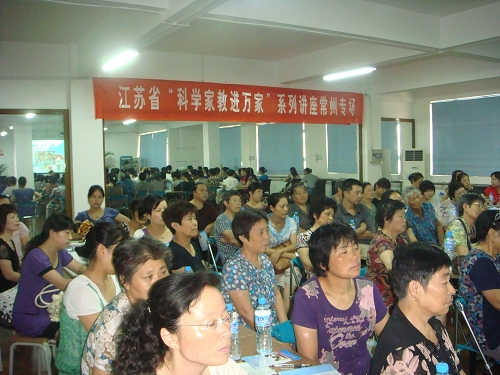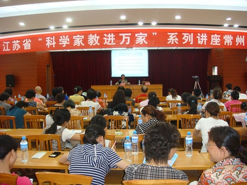 7月24日,由省妇联、省网上家长学校联合推出的“科学家教进万家活动”走进常州、走进社区,为我市广大家长带来两场家庭教育报告会。上午,由江苏省少年研究会理事、扬州家庭教育协会副会长王雄为新北区三井街道家长作主题为“痛苦、成长、幸福”——青春期孩子的教育专题报告,他就“青春期孩子的心理生理特点、心理需求、亲子关系的调和与沟通方法、帮助孩子解决青春期困惑”等方面进行了细致的分析,具有很强的理论性、指导性。下午由江苏大学心理健康教育中心主任谢钢在市妇儿中心为家长作“让我们用爱为孩子撑起一片蓝天”主题报告,谢教授围绕“如何用爱营构良好的家庭氛围、给孩子爱抚与尊重、培养孩子良好的习惯、对孩子永远抱有合理的期望与建立良好的亲子沟通”等方面作了出色的讲解,案例丰富、生动而有说服力。两场家教报告带给家长很多的启发,使家长们受益匪浅。 |