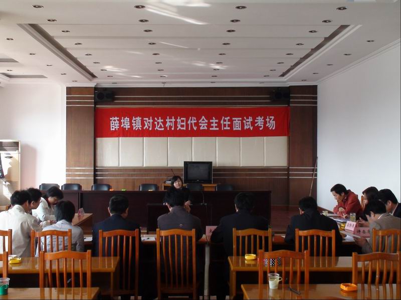 为践行科学发展,开展创先争优,将更多更优秀的女性人才选拔到村干部队伍上来,努力培养和造就一支精干高效、年富力强、素质优良、奋发有为的村干部队伍,扎实推进新农村建设。今天上午,金坛市薛埠镇再次通过公开选拔的方式任用村干部。此次参加薛埠镇对达村妇代会主任竞职面试的4名入围考生平均年龄28岁,均为高中以上学历。面试过程中,考生们通过演讲、现场问答等形式展示自我,参与竞争,最后经评委的现场打分评出前两名进入组织考察阶段。