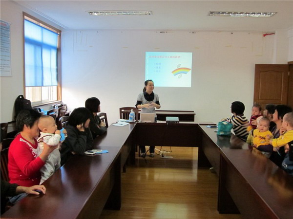 11月4日,天宁区青龙街道青龙苑社区特邀贝因美公司高级育婴师何颖,为社区0-3岁宝宝及家长举行了一堂早教知识讲座。何老师根据宝宝大脑发育各个阶段所表现出的行为特征,结合实例,图文并茂地为家长讲述每个阶段的教养要领。 课堂上,何老师的讲解耐心细致,家长倾听认真专注,整场讲座,亲切生动、活泼有趣,受到宝宝家长的一致欢迎。(天宁区妇联供稿)