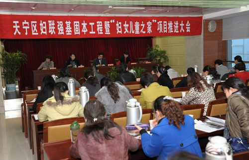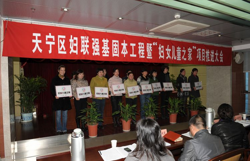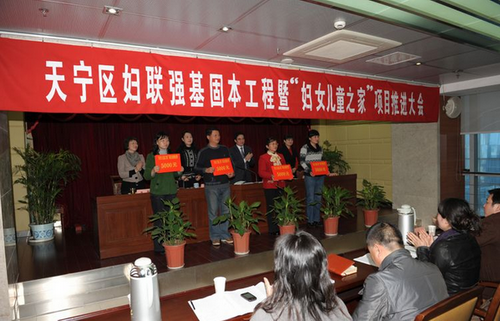 12月10日上午,天宁区妇联召开了强基固本工程暨“妇女儿童之家”项目推进大会。会议目的是贯彻中央党群共建创先争优视频会议精神和省、市妇联组织实施强基固本工程暨“妇女儿童之家”项目现场推进会精神,加强基层妇联组织建设,推进村(社区)“妇女儿童之家”项目建设。 区委常委、组织部部长蔡旭出席会议并作重要讲话,蔡旭提了三点要求:第一,加强队伍建设,在创先争优中充分展示巾帼风采。要加大力度配强村(社区)妇联干部,大力发展巾帼志愿服务队伍;第二,加强阵地建设,在党建共建中全面提升妇女工作影响力。要依托村级组织和社区活动场所,大力推进“妇女儿童之家”建设,充分发挥“妇女儿童之家”的作用,加强对“妇女儿童之家”的指导和管理。第三,加强机制建设,在创先争优中全面落实妇女儿童工作任务。要保证必要的财政支持,争取社会各方支持,善于整合资源赢得支持。 会上,区妇联就全区妇联组织实施强基固本工程,推进“妇女儿童之家”项目建设作了总体部署,兰陵街道工人二社区、青龙街道新市民公寓、雕庄街道朝阳花苑、茶山街道勤丰村四个率先申报省、市级“妇女儿童之家”示范点的单位作了交流发言,会上还向申报争创省、市级“妇女儿童之家”示范点村(社区)下放创建经费,向全区90个村(社区)统一发放了“妇女儿童之家”标牌。(天宁区妇联供稿)
