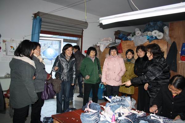 12月15号下午,江苏省妇联及常州市妇联发展部相关负责人一行来金坛调研无围墙加工厂情况,现场察看了金坛直溪镇巾帼来料加工基地运行状况。