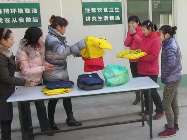 天宁区兰陵街道九洲新世界社区计生协,妇联组织志愿者到武进建安八分公司工地家属生活区,为这里的外来工子女送去棉衣等冬日用品。 (天宁区妇联供稿)