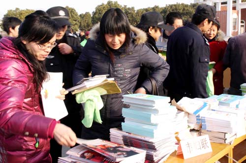 元月7日上午,市妇联宣传、权益和儿少等部门组成的市妇联关爱服务队顶着刺骨的寒风,在新北区春江镇百丈文化广场开展“三下乡”活动,为当地农民送去了科技致富、法律维权、家庭教育和环保低碳等咨询服务,并现场免费赠送了《常州女性》、《平安家庭知识手册》、《新市民生活常识》、《成功始于家教》、《<弟子规>感想选集》、《家庭节水小常识》、《立体农业》、《禽肉制品》、《花卉栽培与保险技术》、《野菜栽培》等书籍2000余册和《妇女法》等宣传资料500余份,受到当地农民欢迎。 (市妇联宣传部供稿)