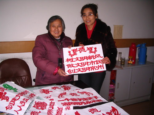 天宁区红梅街道的一宝,民间宣传部长夏云秀春节过后第一个工作日,就来到了北环新村社区,送“德”上门给社区工作人员,并鼓励社区工作人员,在新的一年里“树文明新风、做文明市民、创文明常州”。夏云秀老师虽然年事已高,但耳聪目明,身体健康,不光会编会写会唱,还会一手绝活:剪纸, 夏老师送给了社区工作人员几副有德的剪纸,表示与大家共勉。社区工作人员十分敬佩夏老师无私奉献精神,纷纷表示新的一年里爱岗敬业,奉献社会。(天宁区妇联供稿) |