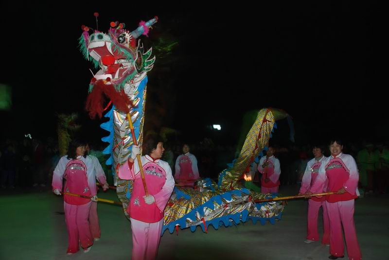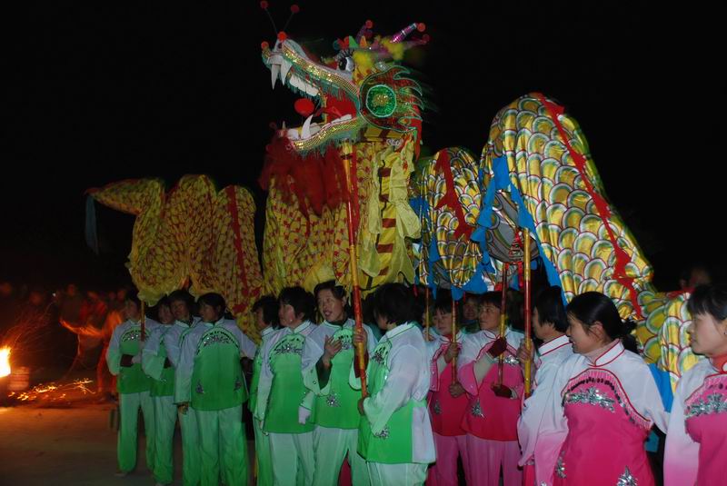 元宵佳节,金坛女子龙灯队在全市各村交流演出。