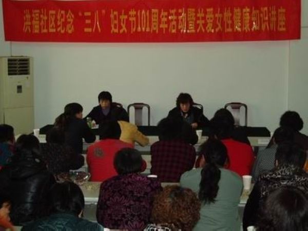 为庆祝“三八”国际妇女节101周年,3月8日下午,洪福社区举办了《关爱妇女健康知识讲座》,50多位妇女聆听讲座。