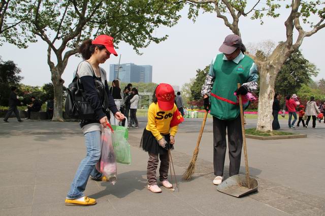 常州红溪实验幼儿园中一班的家长和小朋友自发组成一支环保小分队,利用休息日进入红梅公园开展清理垃圾、文明劝导等志愿者服务。一群头戴小红帽的志愿者活跃在红梅公园内,一手提着塑胶桶一手握着垃圾叉,在捡拾垃圾,同时也对公园内不文明行为进行劝导。一些游客被孩子们的真诚所感染也加入了志愿者队伍,这只环保小分队成为公园内一道靓丽的文明风景线。 孩子们说:“2013年常州要开第八届“中国花博会”,我们要带头行动起来,以实际行动向游人传达一种健康的环保理念,同时也希望更多的市民能加入到我们的行列。” (常州市红溪实验幼儿园 供稿)