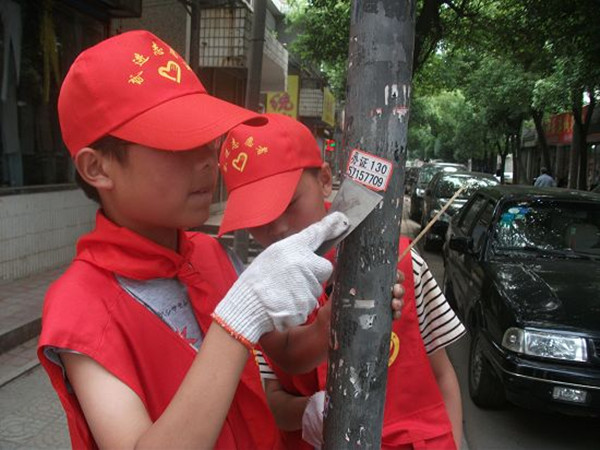 近日,武进区周家巷小学红领巾志愿者和城管局执法大队的叔叔阿姨们,一起积极投身文明城市管理找差活动,查找城市管理中的薄弱环节和突出问题,创造“人人参与、人人文明”的城市环境,为常州创建文明城市奠定基础。 穿上红色志愿者服装的孩子们兵分两路,在城管叔叔、阿姨的带领下来到花园街两侧开始行动。他们向行人和店面经营户发放《武进区城市管理行政执法局法律法规、管理规定》系列宣传材料,捡街道两边道板上的烟头纸屑,铲除电杆等处的牛皮癣、小广告,小志愿者们用自己的行动告诉大家,文明城市创建需要大家的共同努力,每一个市民都有责任、有义务、有能力为武进创建全国文明城市、构建和谐美好家园出一份力、添一份光。(武进区妇儿委办) |