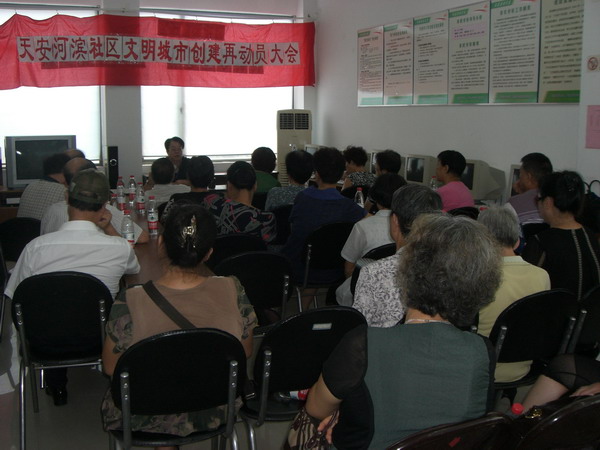 8月17号下午天宁区兰陵街道天安河滨社区会议室召开了由计生协代表、妇联、党员等参加的“文明城市创建再动员”大会。会上社区党总支书记孙继德着重分析了常州文明创建的现状:一是虽然常州进入了全国文明城市推荐城市行列,但我们看到与其他城市还存在不小的差距,还有不少可以再提高之处。二是针对问卷调查失分点题目进行再宣传,再解释,争取提高问卷得分。三是以集体荣誉感激发广大居民的参与文明创建积极性,以良好的状态、影响周围人。四是提倡居民从自己做起、从现在做起、从小事做起、从点滴做起、做文明新风宣传人、做环境卫生美化人、做交通出行守章人、做举止端庄文明人、做文明创建监督人。为进一步迎接全国文明城市创建检查,天安河滨社区通过党建带妇建,向党员、居民进行文明城市再宣传,上门发放“感谢信”。每个单元加贴“文明城市测评调查相关问答”。开展社区文明城市创建健身天天演活动。用橱窗、黑板报、横幅加强文明城市创建宣传。听取居民代表意见,继续解决居民生活中的难题。(天宁区妇联供稿) |