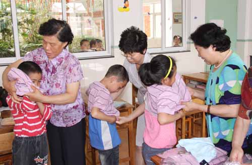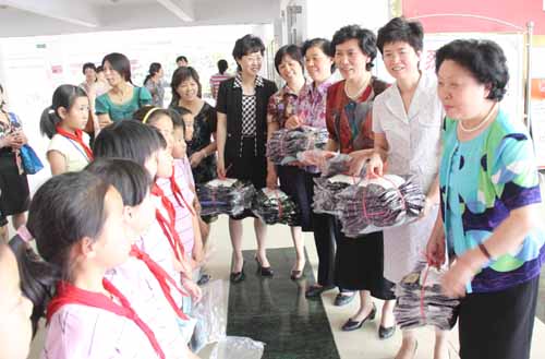 “六一”儿童节即将到来,5月31号,市妇联、市女干部联谊会的女领导干部带着80多件崭新的T恤衫来到位于武进区泰村的绵竹班,看望这些来自地震灾区的孩子们,给他们送上了节日的祝福。一转眼,这些孩子已经在常州度过了一年的时光,一年来,他们得到了常州各届热心人士的关心与帮助,这次穿上漂亮的T恤衫,孩子们个个笑开了颜。两位绵竹班的四川老师也收到了市妇联、市女干联的礼物。 |