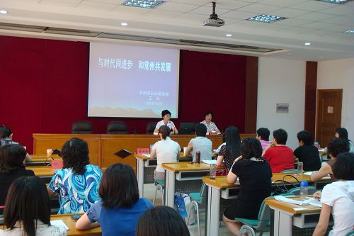 6月3日下午,市妇联主席王莉到市委党校为第八期中青年女干班学员作了题为《与时代同进步、和常州共发展》的专题报告。市妇联副主席陈凤珍主持了报告会。 王主席简要回顾了中国性别平等与妇女发展的百年历史,介绍了常州女性发展现状和妇联工作,并结合个人成长发展的感悟,从相信自我、管理自我、提升自我、完善自我四个方面阐述了如何增强性别意识、提升女干部领导魅力,为学员们上了生动精彩的一课。 市妇联机关、下属事业单位、辖市区妇联干部20余人也到校聆听了报告。 |