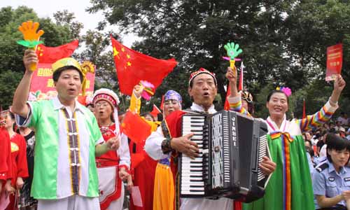 9月5号,常州市“迎国庆讲文明 树新风 促和谐·爱国歌曲家家唱暨第二届家庭文化艺术节”活动开幕式在兰园广场举行,副市长居丽琴宣布活动开幕。 激昂的旋律再现六十年光辉岁月,嘹亮的歌声颂唱六十年时代丰碑。钟楼区清潭三社区夕阳红舞蹈队带来的《盛世欢鼓》,拉开了我市爱国歌曲家家唱暨第二届家庭文化艺术节的帷幕;500多位家庭成员在现场齐声唱响献给祖国母亲的生日赞歌;武进区的新市民家庭上台表演了相声《祖国颂》;新北区河海街道的汉族、朝鲜族、满族、回族等少数民族同胞身着鲜艳的民族服装,登台高唱56个民族共同的声音《爱我中华》。 市妇联主席王莉代表主办单位致辞。今年初夏,市文明办和市妇联联合开展了“爱国歌曲家家唱”活动,在两个多月的时间里激起了全市数十万家庭的情感共鸣。各辖市区文明办、妇联和市女干联、女知联等团体会员,也积极借助正在开展的“幸福广场文艺周周演”、“千台文艺节目走进社区村镇”、红歌会和“祖国颂”文艺汇演等载体开展了系列活动,动员广大妇女和家庭学唱、传唱百首爱国歌曲,使千千万万个家庭以歌咏情,以歌铭志,唱响共产党好、社会主义好、改革开放好、伟大祖国好、各族人民好的时代主旋律;唱出对英雄的敬仰,对祖国的热爱,对幸福生活的赞美;重温了党和人民的革命史、奋斗史和创业史,从内心深处认识并感受到新中国成立以来我国社会主义现代化事业取得的伟大成就,增强了对中国共产党领导、社会主义制度、改革开放事业、全面建设小康社会的坚定信心。 这次“迎国庆 讲文明 树新风 促和谐·爱国歌曲家家唱暨第二届家庭文化艺术节”的开幕,将再次掀起我市红歌家庭传唱活动的新高潮。 |