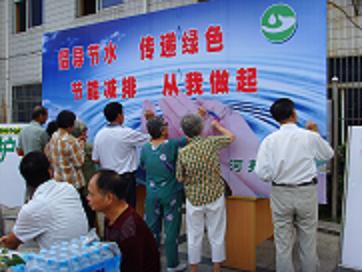 2009年9月24日上午,戚区河苑社区“护水”志愿者60名,在游园广场开展“零距离”接触活动,将平日家庭生活中节能“六件事”——使用节水器具、使用节能电器、使用无磷洗衣粉、使用布袋子、使用菜篮子、使用含氟牙膏,注意一水多用等,节能减排知识传授给居民,同时现场发放宣传品100多份(含氟牙膏60支、节能灯50只、环保竹碳抹布30块、无磷液体洗衣液35瓶、护手洗手液)。河苑社区居民自发成立第三届“护水节”,目的是节能减排进家庭,共建节约型社会。 (戚区妇联供稿) |