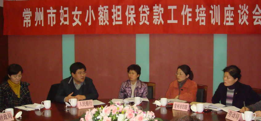 2月2日,市妇联召开全市妇女小额担保贷款培训座谈会,邀请了财政局、劳动和社会保障局、人行常州中心支行、江苏银行常州支行等相关专业人员就妇女小额担保贷款的有关政策、工作流程以及担保方式等方面进行了深入浅出的讲解。各辖市区妇联主席、分管副主席和发展部部长参加培训并就实际操作中遇到的问题进行了现场咨询。 市妇联主席王莉出席会议并讲话,她指出,要充分认识推进妇女小额担保贷款工作的重要性,吃透文件精神,积极争取政策,加强宣传、加强调研、加强协作,做好示范,确保妇女小额贷款项目取得实效。