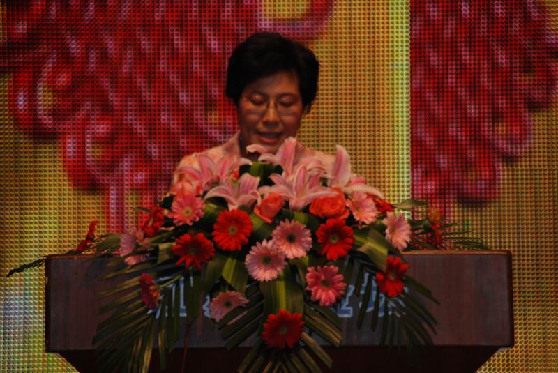 金坛市妇联主席朱珍娣在纪念大会上致辞。她号召全市妇女积极响应市委市政府“调结构、抓创新、促转型”和“苦干三年、实现翻番”的目标,创新“双学双比”、“五好文明家庭”等活动的内涵,唱响“三八高效农业示范基地”等妇字品牌,为建设美丽富饶、民主文明的新金坛作出“半边天”应的的贡献。