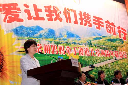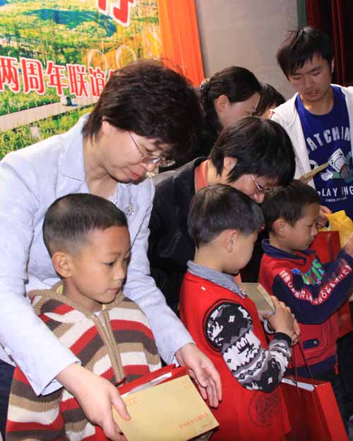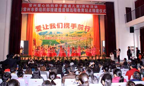 怀揣着对结对孩子浓浓的思念之情,23-25日,满载着常州人民对四川同胞深深的关切之情,作为“常州妈妈”中的一员——市委常委、组织部部长杭天珑、市妇联主席王莉和邓华珍、宣旭萍、朱玲、王晓文等10多位“常州妈妈”代表一起在四川汶川地震两周年前夕,踏上四川绵竹市遵道镇,开展“常州妈妈”牵手遵道儿童两周年联谊活动。 2008年5月12日,四川汶川发生了特大地震灾害,地震中许多儿童失去了父母和亲人。他们的不幸遭遇牵动着常州人民的心。就在地震后的第五天,常州市妇联和本报就联合发起了寻找“常州妈妈”爱心活动,短短几天,全市就有近1500名(个)妇女或家庭报名,有意当“常州妈妈”。经过“筛选”,最后有120位“常州妈妈”如愿以偿,与148位四川孤残单亲儿童结对。 当年10月10日,16位“常州妈妈”代表来到遵道首次与结对的儿童“相见相认”;随后更开展了一系列爱心活动:前年元旦前夕,举办了“爱让我们在一起——牵手遵道儿童共迎佳节”联谊会,“常州妈妈”通过视频了解结对孩子的学习、生活情况,共同分享爱心传递的体会和收获;去年7月,为期一周的“遵道——常州爱心结对暑期夏令营”开营,20多位遵道孩子来到常州,与妈妈共享亲情;今年春节前再次举办“常州妈妈”迎新春茶话会,妈妈代表讲述了和结对孩子的亲情故事,孩子们通过视频抒发对“常州妈妈”的思念之情和新年祝福。两年来,“常州妈妈”为孩子们捐款捐物近80万元,双方书信来往数百封,通过网络、短信、电话等方式交流更是不计其数。一次又一次主题活动的开展,架起了“常州妈妈”与遵道儿童的沟通桥梁,加深了“常州妈妈”与遵道儿童的感情交融,也更坚定了“常州妈妈”为孩子的成长一路呵护的信心和无怨无悔的付出。 市委常委、组织部部长杭天珑在联谊活动上讲话。她希望我市各级妇联组织要不断搭建爱心互助的平台,努力将“常州妈妈”爱心活动打造成为动员全社会力量、弘扬时代新风的品牌工程,成为服务社会、服务少年儿童健康成长、立志成才的爱心工程;希望“常州妈妈”在今后生活中,继续与结对帮扶的孩子和困难家庭建立长期的沟通联系,“开学添文具、入冬寄寒衣,节日遥祈福、时常问声好”,心长相连、爱长相牵,将这份跨越地界的爱延续下去,体现我们每个“常州妈妈”的一种承诺、一种责任和一种心甘情愿的付出。 市妇联主席王莉介绍了开展结对帮扶情况。她表示,牵手结对虽然时间有限,但我们和灾区孩子之间的亲情没有终点,期望通过今天的相聚,“常州妈妈”和遵道孩子的的心贴得更近,爱变得更深。她还代表“常州妈妈”向遵道镇妇联赠送了我市乱针绣名作《江南水乡》。“常州妈妈”们分别向结对的孩子赠送了钱物,和孩子共叙“家常”,还和她们一起表演了节目。市妇儿活动中心向绵竹市妇联捐赠了萨克斯、小号等价值万余元的乐器。 爱在延续扩张。昨天,与“常州妈妈”代表同行的常州 “十佳母亲”代表乔琳琳等,她和“常州妈妈”一起来到遵道看望孩子。捐资设立“慈母基金”的王寒茹获悉市妇联组织到遵道看望结对帮扶的孩子,在香港参加会议的她专程飞抵遵道参加活动,一起为当地贫困单亲家庭孩子送上了学习和生活用品。 在德阳市委常委、绵竹市委书记兰开驰,绵竹市委常委、组织部长蔡绣鸿,江苏省援建指挥部常务副总指挥李亚平等陪同下,杭天珑等一行还在参观了常州援建项目遵道镇农贸市场、廉租房、常州桥、棚花村年画传习所,金花镇玄郎村、金花学校,绵竹市劳动就业与社会保障中心、绵竹市中医院和常绵公园等。 仪式结束后,“常州妈妈”有的来到结对孩子的家庭,看望了孩子的亲朋等。在为孩子们送去母爱的同时,市妇联还组织了“常州-遵道姐妹牵手谋发展用工洽谈会”。陆秋枚、邵梅如、许常娥等三名“常州妈妈”分别代表所在的大诚纺织集团、常州市至秦工贸有限公司、常州声荣纺织品有限公司等企业,与当地妇联洽谈寻求合作项目,欢迎有意愿的四川妇女姐妹们到常州创业就业,实现两地牵手共谋发展。 市妇联副主席储蕾、市妇儿工委副主任于巧锡参加了牵手遵道儿童两周年联谊活动 。 (市妇联儿少部、宣传部供稿)