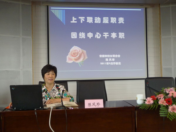9月26日--28日,在河海大学(常州校区)阶梯教室里,新北区200余名巾帼代表兴致勃勃地参加了新北区2011年基层妇女干部培训班。 区妇联主席沈春英同志主持了开班典礼。区委常委、副区长王宇伟同志出席会议并作了开班动员。王区长在讲话中高度肯定了近几年来新北区妇联所做的工作和取得的成绩,他同时对参训的全体学员提出三点工作要求:一要在把握政策中提升能力;二要在交流研讨中提升能力;三要在学以致用中提升能力。最后王区长还对广大妇女干部提出了三点希望:一是要在服务大局中谋划思路;二是要在整合资源中放大作为;三是要在创新实践中体现价值,不断开创新北新时期妇女工作新局面。 培训班是由新北区委党校、新北区妇联共同举办的,目的是切实加强妇联组织自身建设,促进基层妇女干部尽快适应新形势新要求,提升综合素质,增强服务能力,全面开创妇女工作新局面。参加这次培训的有各镇(街道)妇联主席,村妇代会主任、社区妇联主席,部分企事业单位妇代会负责人代表,区直属妇委会负责人等。三天的时间里,妇女干部们学习了市、区党代会工作报告解读,如何做好基层妇联工作,新形势下妇联组织如何积极参与创新社会管理,婚姻家庭纠纷调解技巧,如何做幸福女人、建和谐家庭以及《新婚姻法》解读等,同时观看了电影《秋之白华》、《永贻芬芳》。