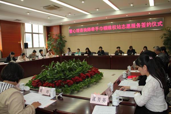 10月25日下午,钟楼区婚姻家庭纠纷人民调解委员会在区社会矛盾调处中心正式挂牌成立,同时还举行了心理咨询师牵手巾帼维权站志愿服务签约仪式。市妇联副主席孙惠,区妇联、司法、法院等有关单位的领导以及各街道妇联主席、调解员共30余人参加了本次活动。 钟楼区婚姻家庭纠纷人民调解委员会成立标志着钟楼区婚姻家庭纠纷调解工作步入法治化、正规化轨道。区婚姻家庭纠纷调委会聘请了22名有一定法律知识、较强矛盾调处能力及工作热情的妇联干部、专职调解员、法官、律师、心理咨询师等热心人士组成人民调解员队伍,主要受理以妇女、儿童为主的各类婚姻、家庭纠纷、帮助当事人排解各种婚姻、家庭危机,提供相应的维权咨询服务和法律援助,及时将各类家庭、婚姻纠纷化解在萌芽状态,夯实婚姻家庭矛盾纠纷“第一道防线”,促进家庭成员关系和谐发展。 钟楼区妇联主席张瑾指出,妇联组织与家庭联系紧密,在社区具有得天独厚的优势,调委会的成立和心理咨询师牵手巾帼维权站志愿服务活动的开展,是区妇联选准服务妇女儿童这个切入点,积极参与社会管理创新工作,为建设和谐社会作贡献的积极探索。会上,江苏东晟律师事务所副主任郝秀凤、常州市心理卫生协会理事长朱坚分别作了表态发言。 市妇联孙惠副主席到会并讲话,她充分肯定了我区妇联在妇女维权和婚姻家庭纠纷调解中所取得的成绩,勇于创新、敢于担当,善于整合多方资源,真心、真情、真诚做好妇女的娘家人和维权代言人。区妇联和区法院、司法联手成立区婚姻家庭纠纷人民调解委员会,必将极大地增强钟楼区妇联参与社会管理、服务妇女和家庭的能力。 最后,与会人员一行实地参观了钟楼区婚姻家庭纠纷人民调解中心。(钟楼区妇联供稿) |