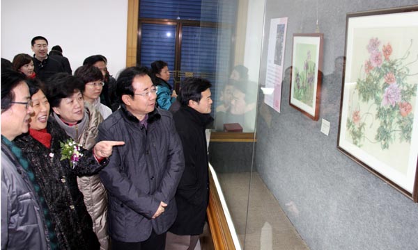 “常州女画家中国画展”于24日上午在吴青霞艺术院正式开幕。本次展览展期10天,是常州市第一次以女性画家为主角的画展,邀请展出了常州老中青三代8位女画家的50多幅中国画作品。其中既有德高望重的著名画家房师田,她的山水画在当今中国画坛中具有很高声望;还有海粟大师之女刘蟾女士,她以继承海老山水为特色,画风古朴苍劲;更有特点的是张晓星、张晓霞姐妹画家,她们以细致、淡雅、意境深远、超逸画风独树一帜。(市妇联宣传部供稿) |