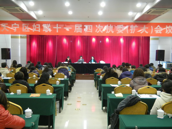 1月16日,天宁区妇联召开第十一届四次执委(扩大)会议。天宁区妇联主席王钧总结了2011年天宁区妇联工作,部署了2012年主要工作任务。区委副书记嘉秀娟参加会议。