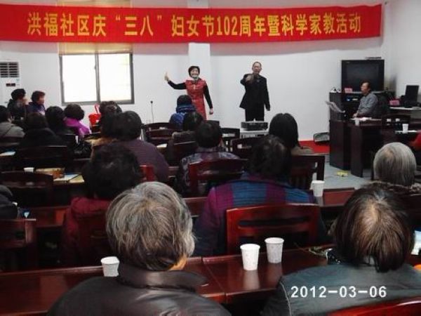 | 新北区三井街道洪福社区开展纪念“三八”国际劳动妇女节102周年暨“2012年常州市科学家教进基层公益讲座”活动 |