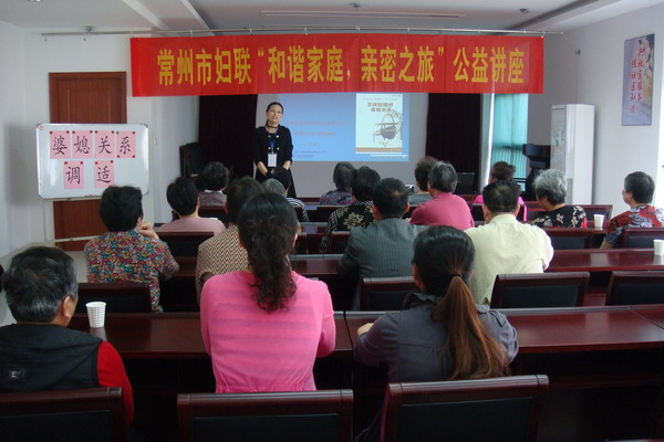 我们每个人都在社会和家庭生活中扮演着不同的角色,家庭关系处理的好与不好直接影响到家庭的和谐与稳定,特别是婆媳关系的和谐融洽已逐步成为一个家庭乃至一个社区和谐稳定的重要因素。2012年5月22日下午,由常州市妇联主办,天宁区妇联承办的“和谐家庭•亲密之旅”公益心理讲座走进天宁区红梅街道凯旋城社区,特邀请常州市心理卫生协会的副秘书长,国家二级心理咨询师王京老师对《婆媳关系调适》作了精彩讲解,王老师用浅显通俗的语言,针对怎样促进婆媳之间的和睦相处,如何对日常小事造成的分歧进行沟通,如何避免双方因小矛盾日益积化演变成紧张关系等一系列婆媳之间的问题展开讲述,生动的事例、风趣的语言获得了在场居民的阵阵掌声。 本次讲座不仅使社区妇女学会了婆媳相处的技巧方法,以及平常婆媳之间相互交流沟通的重要性,也为她们在今后生活中更好地融洽婆媳关系,促进家庭和睦,增进家庭幸福感,最终达到共建和谐社区的目的起到了积极的作用。(天宁区妇联供稿)
