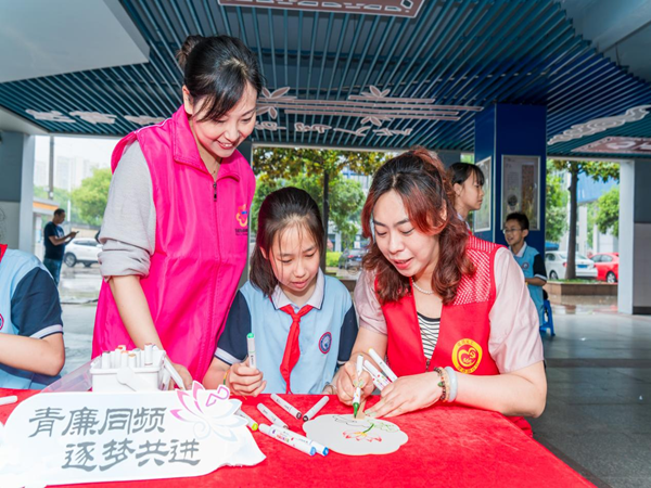 三、家社协同育人,点亮七彩假期。着眼于传统节日+家风培育,社区妇联联合常州市五星实验小学,在校内特别举办“妙趣端午,与‘粽’不‘童’”主题活动,巾帼志愿者们通过钓粽子、猜灯谜、画廉洁蛋、扇子等环节,让孩子们充分体验端午民俗文化、感受传统民俗魅力。社区妇联汇聚优质资源、凝聚共建合力,对接学校、社工站、社会组织等社会力量共同参与青少年服务,社区成立至今以“童享飘香”为主题青少年系列活动共计50余场,服务青少年2000余人次。今年“童享飘香 绿能之光”为主题贯穿整个暑期,通过情境案例、小组讨论、实地探索等多样化的方式,为青少年提供探索新能源的机会,“巾帼红”与“能源绿”结合,着重培养青少年的环保意识和科技创新能力。
