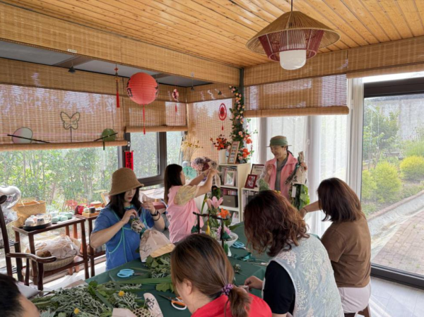 为弘扬中华优秀传统文化,凝聚基层妇女力量,5月27日,武进区雪堰镇城东村妇联携手琴端风月妇女微家,成功举办“‘艾’意浓浓端午情 —— 手工门挂制作活动”,吸引众多妇女群众热情参与,以巾帼之力传承民俗,共话端午情。 活动现场,艾草清香萦绕,五彩丝线、香囊配件等材料整齐陈列,营造出浓厚的节日氛围。巾帼志愿者杨红老师化身传统文化“讲解员”,为妇女同胞们详细讲述端午节悬挂艾草门挂的习俗渊源。她生动介绍,古人视端午为“五毒尽出”之时,艾草有驱邪避秽之效,门挂承载着祈福纳吉的美好寓意,是代代相传的文化智慧结晶。随后,杨老师现场示范门挂编织技巧,从艾草捆扎到彩绳缠绕,从装饰点缀到细节处理,手把手带领大家制作兼具传统韵味与创意美感的端午门挂。