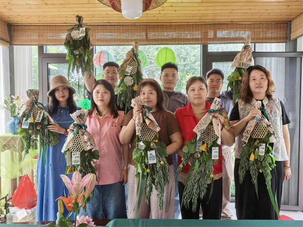 活动中,妇女同胞们围坐一堂,互帮互助、热烈交流。“彩绳交叉打结更牢固”“吊坠错落有致更美观”,大家你一言我一语,分享制作心得与技巧,欢声笑语不断。在温馨协作的氛围里,邻里情谊不断升温。经过一个多小时的精心制作,一件件造型别致的门挂新鲜出炉,艾草与菖蒲相映成趣,香囊流苏摇曳生姿,传统手作与现代创意完美融合。大家手持作品合影留念,艾叶的碧绿与笑容的灿烂交织,绘就基层妇女团结友爱的生动画面。 制作结束后,一场温馨的端午茶话会接续开展。妇女同胞们品尝着端午特色茶点,畅谈生活点滴,分享制作门挂的喜悦与感悟,现场气氛热烈融洽。此次活动通过“文化讲解 + 手作实践”的形式,让妇女同胞们沉浸式感受端午传统习俗魅力,在动手实践中传承优秀传统文化,更有效激发了基层妇女参与文化活动的积极性,增强了妇联组织的凝聚力与向心力。