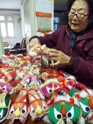 说着,王老太端出一个大纸盒,里面装着五颜六色近50双完工的虎头鞋,“传统虎头鞋的做法很讲究,老虎的鼻子、眼睛都要一针一线绣上去,不像现在店里卖的,眼睛鼻子就只缝一块布贴上去了事。”她拿起一双棉布虎头鞋说,像这样一双,成本大概在10多元,缝6个小时;单鞋的成本在6元左右,但是得缝一天。
