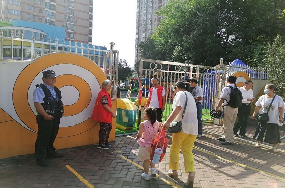 维持幼儿园门口的交通秩序、疏散引导人流、为入园的孩子测量体温、查验相关人员的二维码,一件件一桩桩,事情虽然繁琐,但是在怡康社区工作人员、怡康幼儿园老师以及来自文体协会的志愿者的共同努力下,在怡康幼儿园开学的第一天,所有的一切都显得有条不紊。为了孩子的安全复课,大家都贡献着属于自己的一份心力。