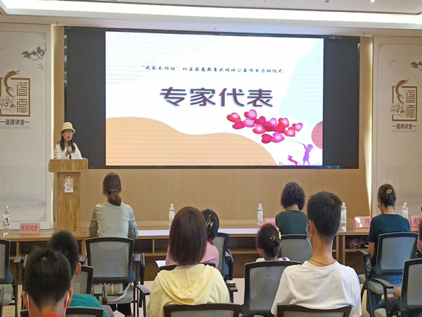 国家高级家庭教育指导师、资深学前教育、青少年儿童教育专家包丽娜以《理解孩子,与孩子一起共同成长》为题,为青少年家庭代表做讲座。
