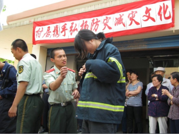 在全球气候变化和我国经济社会快速发展的背景下,我国面临的自然灾害形势严峻复杂,灾害风险进一步加剧,灾害损失日趋严重。为唤起社会各界对防灾减灾工作的高度关注,使全社会防灾减灾意识的普遍增强,推动全民防灾减灾知识和避灾自救技能的普及推广,最大限度地减轻自然灾害的损失。5月11日戚区花溪社区妇联开展了以“宣传减灾知识 提高防灾减灾意识”为主题的实战演练活动,社区妇联邀请了常铁技校学生与巾帼志愿者共同参与此次实战演练。戚月线消防三中队的队员们现场演示了快速换装的技巧和方法。最后参加活动的学生和志愿者们以五人一组进行了换装比赛,他们以最快的速度进行换装,换完装后他们还在消防队员的带领下绕场跑步一圈,充分体验了消防队员穿着全副装备现场救火的艰辛与现场紧张的气氛。 |