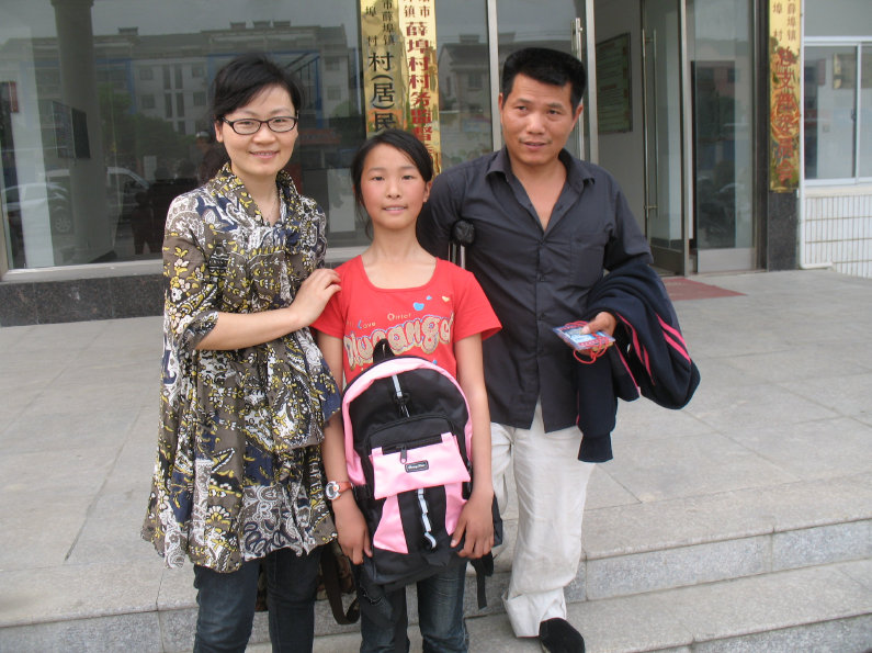 薛埠中心小学杭某父亲身有残疾,长年在外为生计到处奔波,母亲智障,自身的起居生活都无法安排,更不能负责子女的学习辅导,生活起居完全依靠年近八旬的奶奶负责,生活十分困难。5月31日,金坛市妇联在了解这一情况后,主动牵线搭桥,联系了金坛市广播电视台乔琳琳、李文华等5位“爱心妈妈”来到茅山老区薛埠镇,与5位贫困留守儿童结成了爱心帮扶对子,为她们送去书包等学习用品和爱心款,表达关爱之情。(金坛市妇联供稿) |