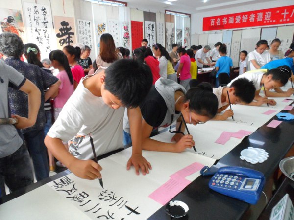 为庆祝中国共产党成立91周年, 6月18日上午戚区戚大街社区妇联联合戚区档案局、市地税三分局、戚街道、戚区实验小学等单位,在社区活动室内举办“百名廉政书画爱好者喜迎“十八大””书画展示,百位廉政书画爱好者精心创作了百幅书画作品,为党的生日及“十八大”的召开,送上自己的一份祝福。