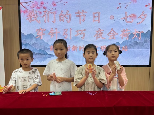 七夕今宵看碧霄,牵牛织女渡河桥。时值七夕佳节,为弘扬中华民族优秀传统文化,传承传统习俗,8月7日,前进村妇联、关工委开展“穿针引线,夜会荷灯”七夕活动。