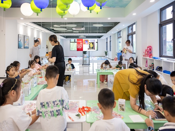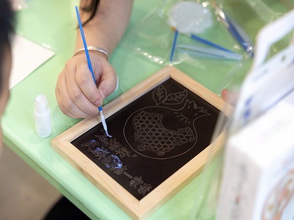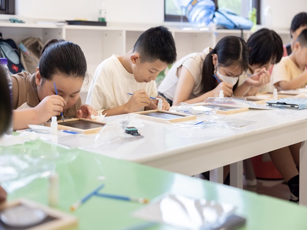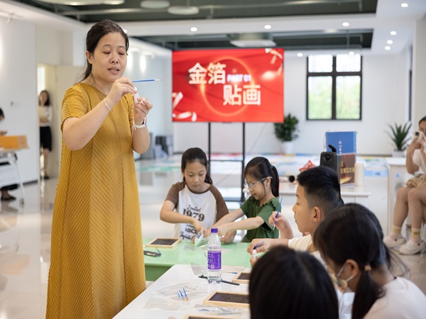 “金箔锻制工艺指的是将金箔锤成薄片的传统手工技艺全过程,其技术发源于东晋、兴起于南朝、成熟于元明清,至今已有1700多年的历史......”活动现场,志愿者老师向孩子们介绍着金箔画的发展历史与文化底蕴,随后,在老师的讲解下,大家开始动手制作。