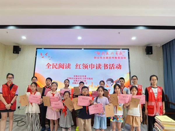 8月16日下午,青枫社区开展了第一期“红领巾读书分享会”活动,用书本搭建情感交流的平台,让更多的红领巾青少年参与到阅读的队伍中,引导少年儿童爱读书、读好书、善读书,在阅读中丰富自己、更好成长,推动全民阅读学习型书香社区的建设。活动现场,社区工作人员为青少年们发放儿童读物,和小朋友们一起阅读,并通过提问的方式引导孩子们多读书、读好书、自觉抵制不良读物。随后,大家对书中精彩片段进行分享交流,从书本中谈论到实际中,从篇章里谈论到生活里,大家你一言我一语,互相说出自己的读后心得,讨论的不亦说乎。